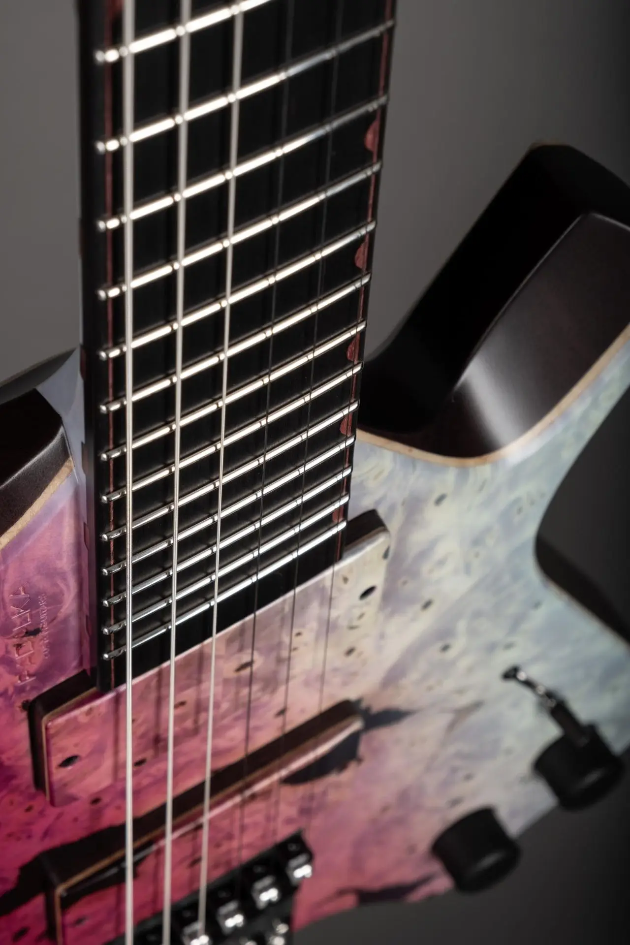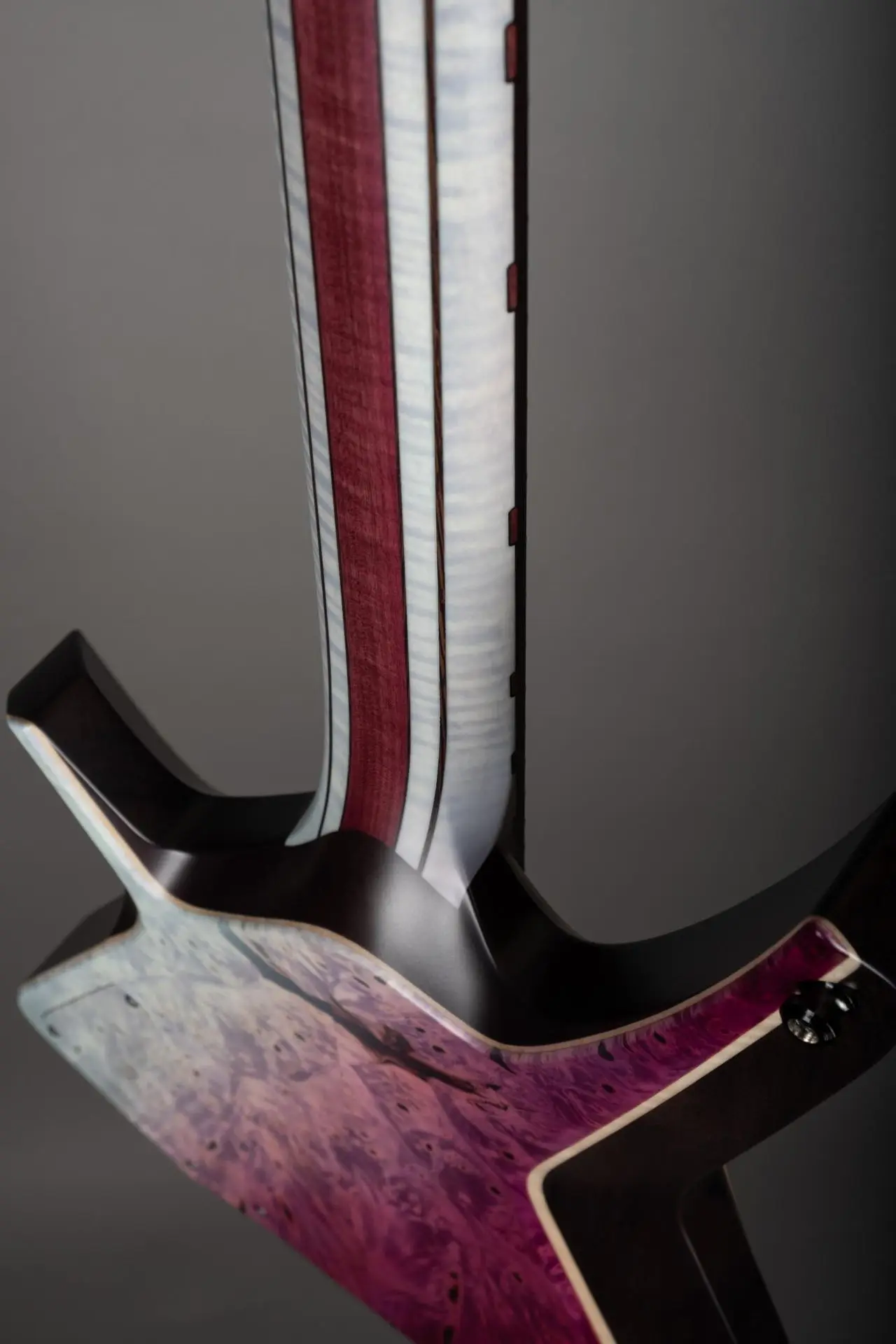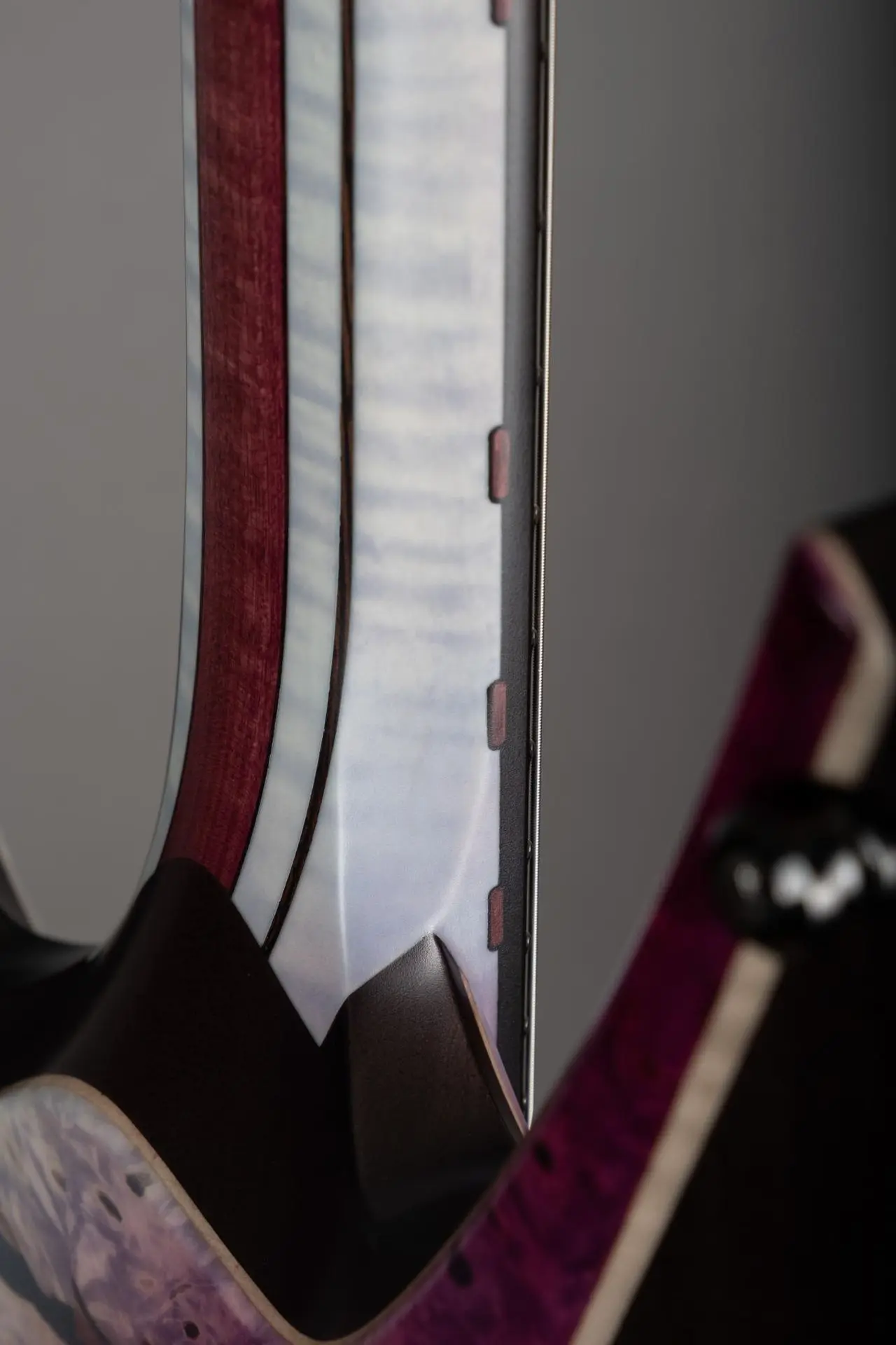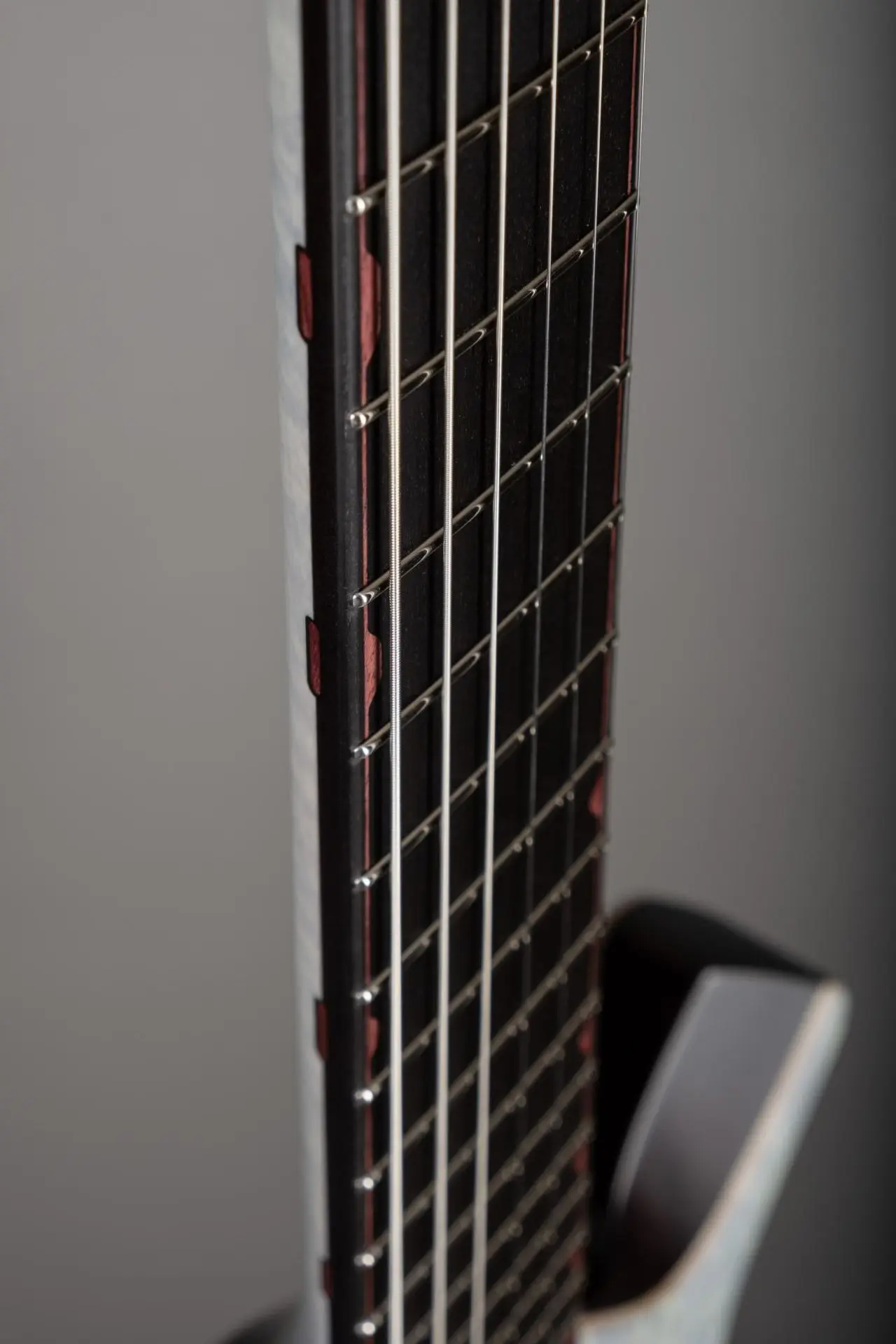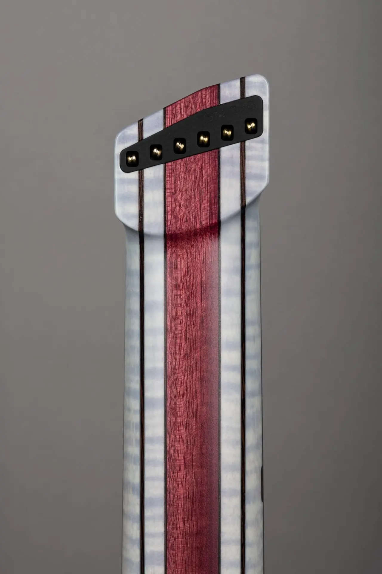 This guitar is a counterpart to the Master Series bass I built for Dingwall this year. Both instruments share the same design language and materials, with the necks made from a single neck blank originally prepared for the bass.